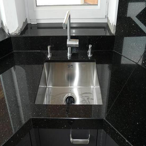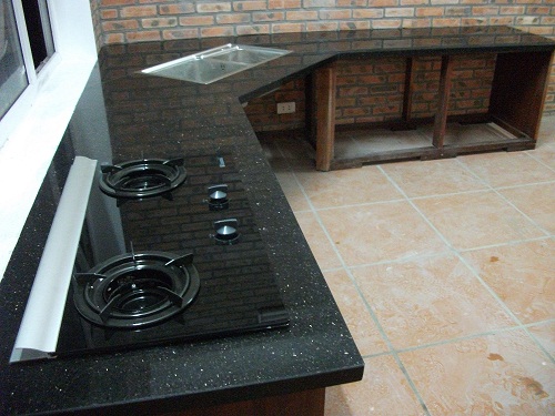 – Là loại vật liệu phổ biến dùng cho mặt bếp, đá granite khá đa dạng về màu sắc và hoa văn. Ưu điểm của đá granite là rất bền cứng và không bị ngấm nước, không tốn nhiều thời gian để lau chùi và bảo dưỡng.